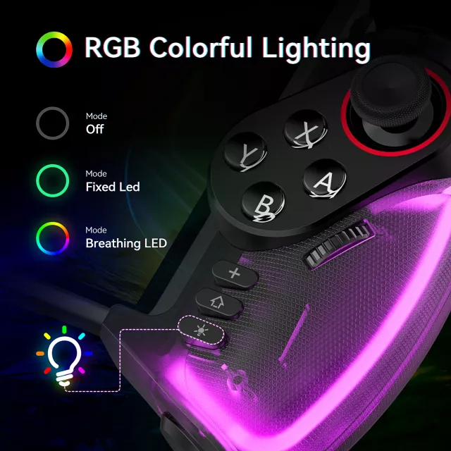 This LED controller is perfect for players who want style and performance in one. The colorful lights set the mood, while the adjustable features make it versatile for all game genres. It’s great for casual gaming, competitive matches, or long marathon sessions with friends. With built-in battery power, wireless connection, and precise controls, it’s a must-have accessory for every Switch gamer.