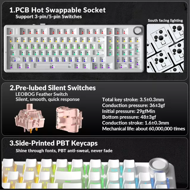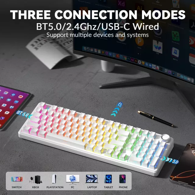 This keyboard is ideal for anyone who spends long hours typing or gaming and wants a quieter, more comfortable experience. Its hot-swappable design appeals to tech enthusiasts who enjoy personalizing their gear, while the robust build and versatile features suit professionals, gamers, and casual users alike. Whether you’re powering through work tasks, streaming your favorite games, or just browsing, this keyboard brings precision and style to your fingertips.