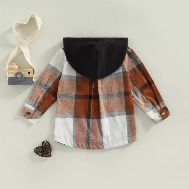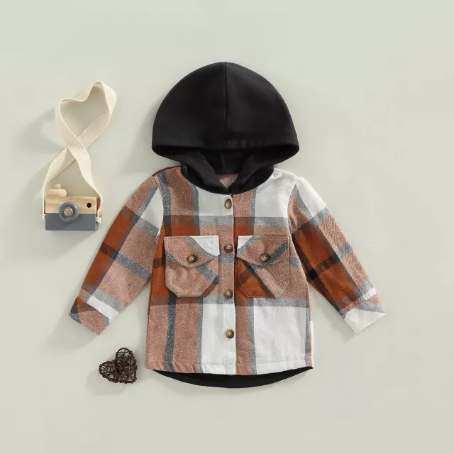 Dress your little one in cozy style with this adorable plaid hooded shirt coat, designed just for toddlers and young boys. With a soft cotton-blend fabric and classic long sleeves, this shirt coat blends the warmth of a jacket with the easy style of a shirt. The attached hood adds a touch of cool while keeping your child protected on breezy days. Whether it’s a playdate, a walk in the park, or a casual family outing, this charming piece is made for everyday wear and effortless cuteness.