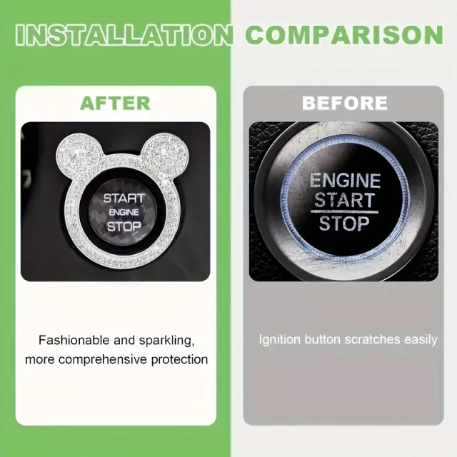 Turn everyday driving into a glamorous experience with this Luxury Diamond Car Start Button Cover. Designed especially for women who love to add a touch of sparkle and fun to their car’s interior, this charming accessory transforms a plain ignition switch into a dazzling statement piece. With artificial diamonds and a cute cartoon-inspired design, this ignition sticker is not just eye-catching – it’s irresistible.