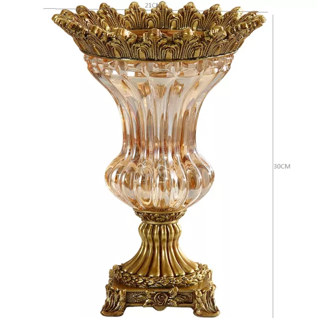 Elevate your interior styling with this Luxury European Resin and Glass Vase—a truly artistic centerpiece for modern and classic homes alike. Designed with a refined stereoscopic shape and crafted from a fusion of smooth resin and shimmering crystal-clear glass, this vase brings a bold yet elegant presence to any surface. Whether placed at your living room entrance, beside your bed, or on a decorative console, it adds a rich, textured layer of timeless European luxury.