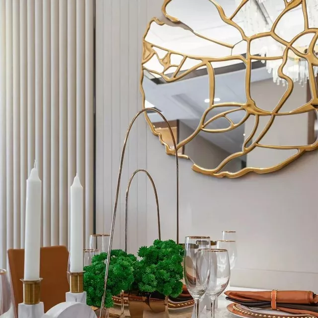 This wall mirror excels in any space where you want to add depth or need to reflect more light. It is particularly effective in smaller rooms or darker spaces where it can magnify natural light and open up the area. Its aesthetic appeal also makes it perfect for use in entryways to make a bold first impression or in main living areas where its beauty can be appreciated by all.