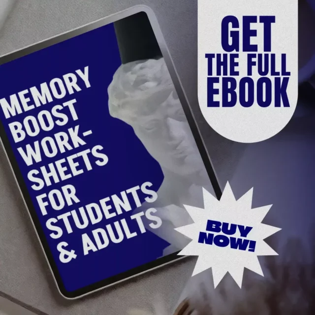 Download the Memory Boost Worksheets for Students & Adults today and start your 30-day journey toward stronger recall, sharper focus, and lifelong brain fitness. Whether you’re a student, a busy professional, or someone simply wanting to think more clearly—this ebook has what you need. Grab your digital copy now and unlock the full collection of practical memory-enhancing activities suitable for all ages!