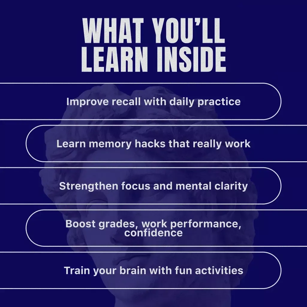 This eBook really understands your unique memory style and helps optimize it 🧠 It includes daily habit builders like sleep strategies, diet tips, stress-reduction techniques...all things we often overlook but are crucial for good memory.