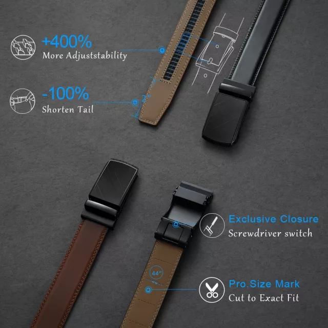 Crafted from high-quality split leather, this belt features a sleek, automatic buckle made from durable alloy. The easy-to-use ratchet mechanism slides and locks smoothly, giving you micro-adjustments with a gentle pull. To release, just press the side lever. It’s intuitive, fast, and eliminates the wear and tear common in traditional belts. For the perfect fit, the strap can be trimmed to size, offering a fully customizable experience.