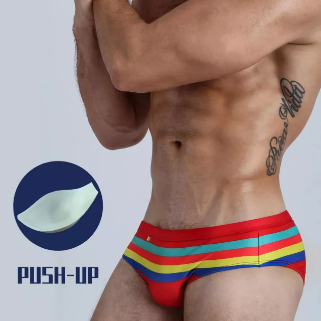 Turn heads this summer with our Men’s Padded Striped Swim Briefs – the perfect blend of comfort, style, and support. Designed for confident men who want to feel and look great by the pool or at the beach, these swim briefs feature bold, colorful stripes and an enhancing push-up pad to elevate your beach look instantly. Whether you’re sunbathing, swimming, or just relaxing at a beach party, this swimsuit is your go-to essential for a standout summer.