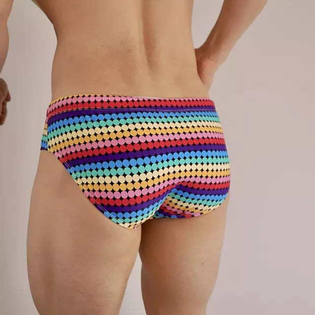 The bold rainbow print adds playful energy, while the removable sponge pads give your physique an instant lift, shaping and supporting exactly where you want it. Made from a breathable blend of spandex and polyamide, these briefs hug your body without restricting movement — making them just as suitable for swimming as they are for everyday wear or intimate moments.