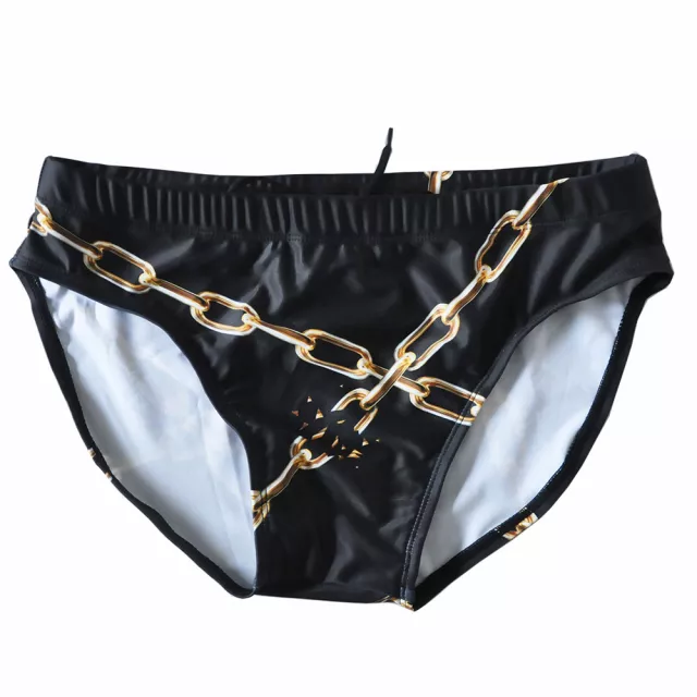 Step into the sun and stand out from the crowd with these eye-catching low waist men’s swim briefs. Designed for confident men who aren’t afraid to show a little skin, these sleek and sexy briefs combine vibrant geometric patchwork with a striking chain-style accent that screams modern style. Perfect for the beach, pool parties, or tropical getaways, this swimwear is all about comfort, movement, and a bold fashion statement.