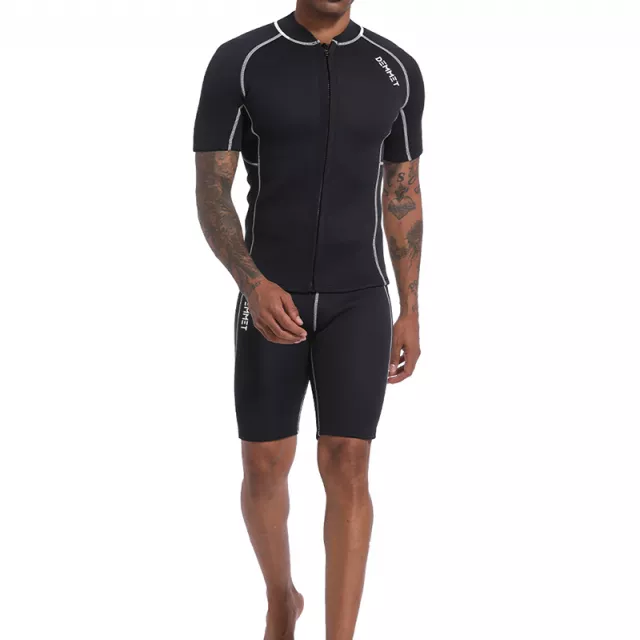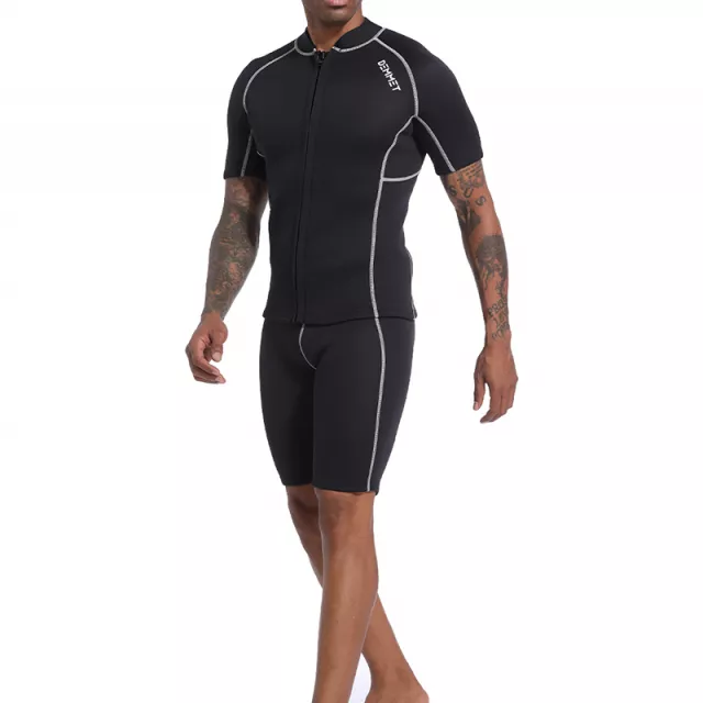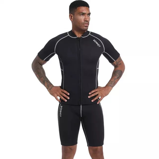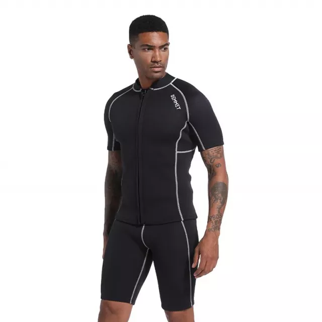 Engineered for adventure, this short wetsuit for men is your go-to gear for all water sports. Whether you’re diving into cold waves or gliding through calm waters, this high-performance neoprene wetsuit keeps your body protected and flexible. Designed with a front zip and a sleek split-sleeve cut, it ensures comfort and easy wear—no fuss, just function. Choose 3MM thickness for the insulation you need, whether you’re swimming in summer or surfing in cooler seasons.