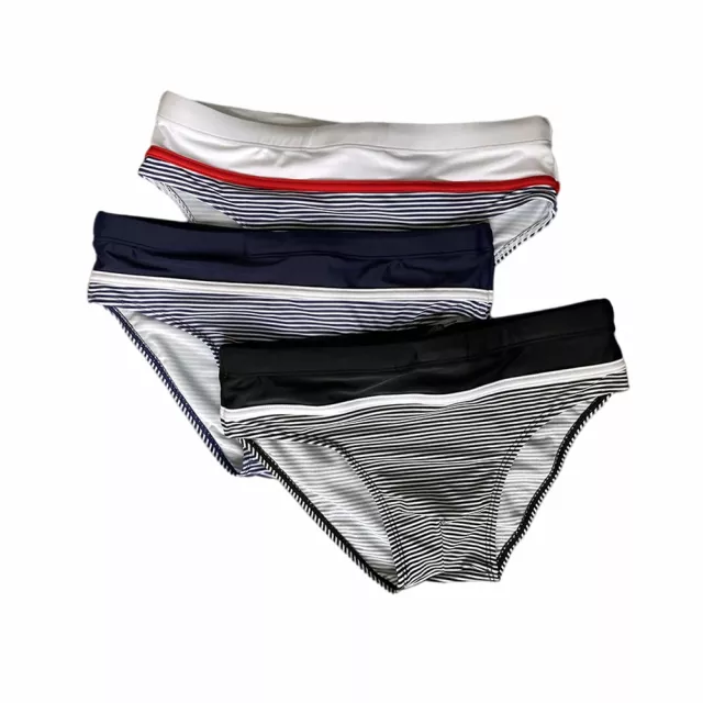 Ready to upgrade your swimwear? Add a pair (or two) of these striped low-rise swim briefs to your summer wardrobe and feel the difference every time you hit the water. With just the right balance of sex appeal and sporty function, these trunks are the ultimate choice for confident men who know how to make a splash.