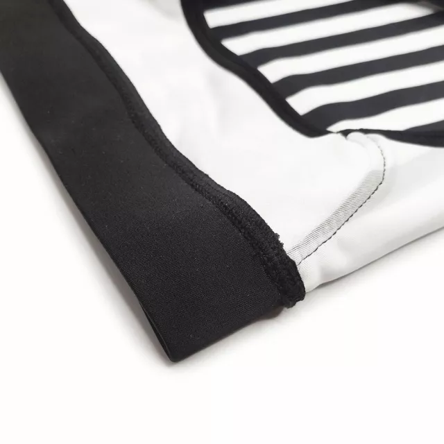 Crafted from a premium blend of polyester, spandex, and polyamide, the material is smooth, stretchy, and quick-drying, ensuring all-day comfort without chafing. The unique moire striped pattern and bold contrast color design add an eye-catching edge, while the built-in push-up padding gives you a sculpted silhouette where it counts.