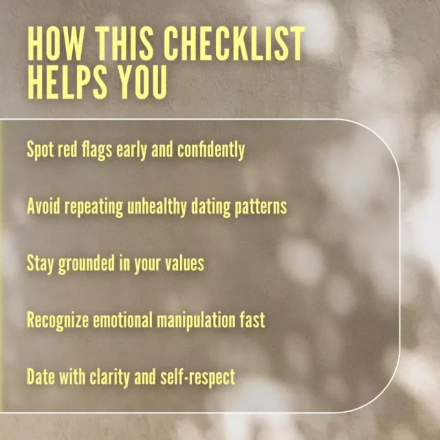 The Mindful Dating Red-Flag Checklist is for anyone navigating modern dating, those recovering from past relationship patterns, and anyone seeking emotionally safe, authentic connections.