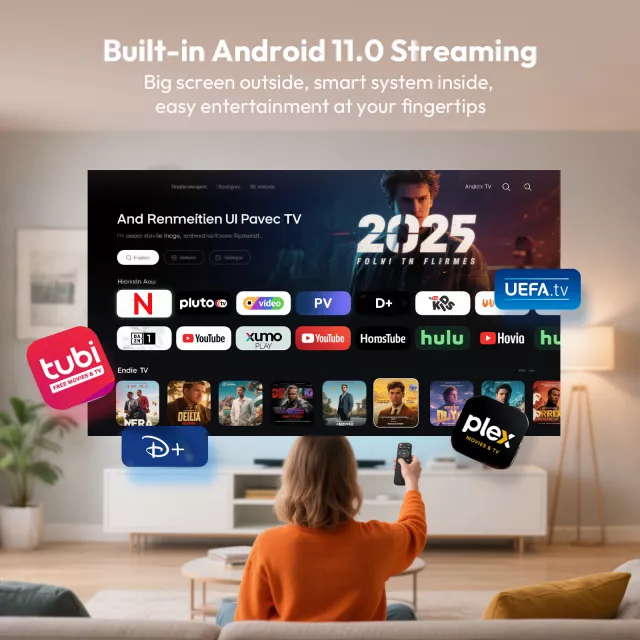 Running on an Android operating system, this projector allows you to stream directly from your favorite apps without needing extra devices. From Netflix to YouTube, access endless entertainment on demand. With built-in WiFi and Bluetooth 5.4, connecting to your devices is smooth and reliable—perfect for streaming, gaming, or casting from your smartphone or tablet.