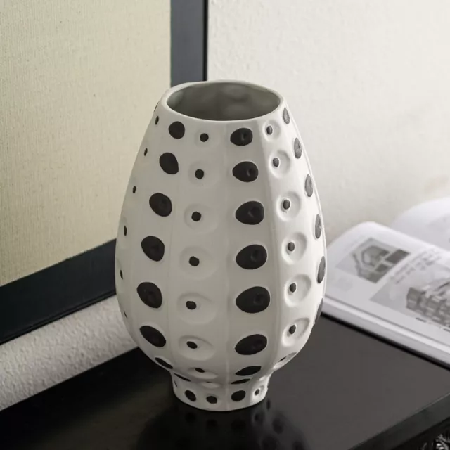 Add a modern touch of flair to your home with the Black and White Spotted Ceramic Vase. This sleek and stylish piece blends classic monochrome tones with a playful, eye-catching spotted pattern that instantly draws attention. Whether you’re styling a dining table, TV cabinet, console, or shelf, this ceramic vase transforms any surface into a visual statement. Its modern design and artistic feel make it perfect for those who appreciate clean aesthetics with a bold twist.