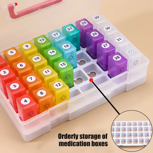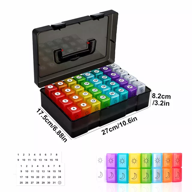 What makes it special? Unlike typical weekly organizers, this system covers a full 30 days. It saves space, reduces waste, and gives you peace of mind. The sturdy yet lightweight case also transforms it into a multipurpose storage box—versatile and reliable wherever you go.