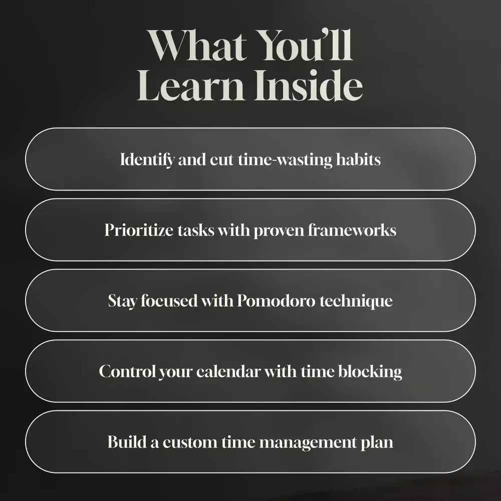 This course isn’t just informative; it’s transformative! From understanding how to use the Eisenhower Matrix effectively, to implementing effective time-blocking strategies – I’m now managing my workload like never before!