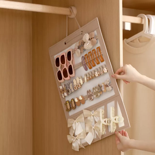 Say goodbye to cluttered drawers and lost hair clips! This versatile hanging organizer is designed to keep your hair bows, clips, scrunchies, and sunglasses perfectly organized in one convenient place. Made from durable polyester, it offers a sturdy yet lightweight solution that easily hangs behind doors or on walls, making the most of your space without taking up any room on your dresser or countertop.