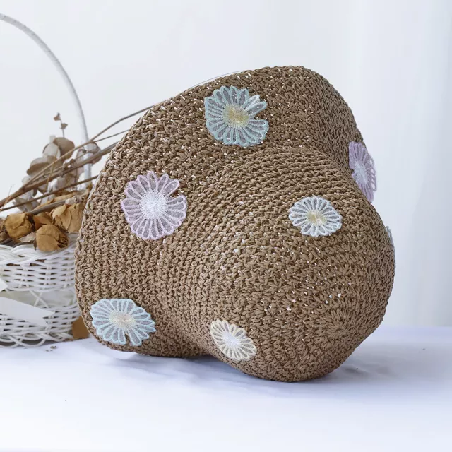 This crochet sun hat isn’t just a pretty accessory; it’s a practical and stylish solution for your summer needs. The foldable design allows for easy storage, so you can always have it on hand when you need it. Its lightweight straw material ensures breathability and comfort, even on the hottest days. The unique floral pattern adds a pop of color to any outfit, making it the perfect addition to your vacation wardrobe.