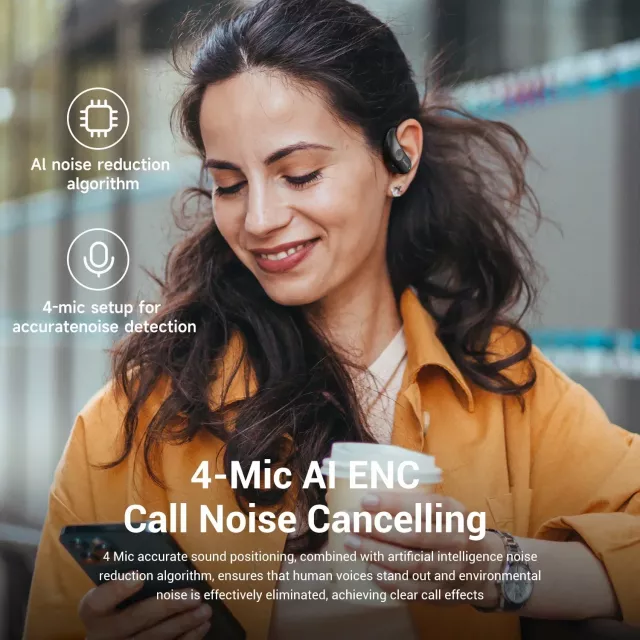 Take calls like a pro with the integrated AI-enhanced 4-mic system that filters out background noise, delivering sharp and clear voice transmission. Thanks to the latest Bluetooth 5.3, enjoy ultra-fast pairing, rock-solid connectivity, and low power consumption for all-day listening. The smart 2-inch color touchscreen gives you full control of playback, ambient sound settings, and six customizable sound modes—right at your fingertips.