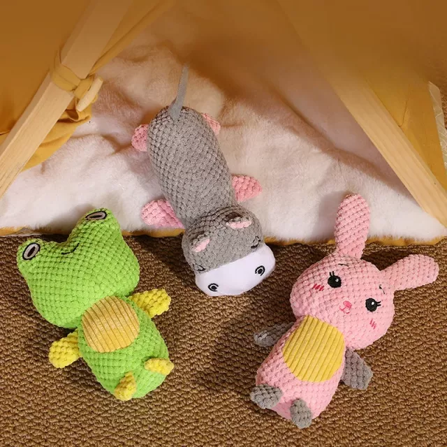These plush toys aren’t just cute—they’re designed with your dog’s natural instincts in mind. Each toy features a built-in squeaker that activates with every bite, satisfying your pet’s desire to hunt and interact. Whether it’s a game of fetch or some solo chewing time, the toy keeps your pup active and engaged. Plus, the textured surface helps clean teeth and massage gums during play, promoting better oral health without any extra effort from you.