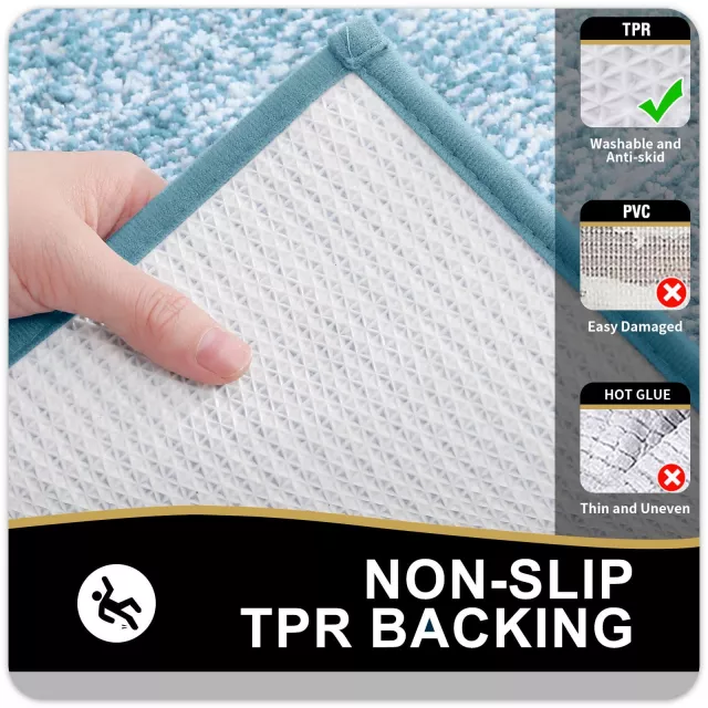 Unlike mats with weak PVC or hot glue backings, this rug features a sturdy TP rubber backing that resists wear even after repeated washes. Its non-slip design keeps it in place, giving you peace of mind every time you step out of the bath or shower. Always keep the floor under the rug dry for maximum safety.