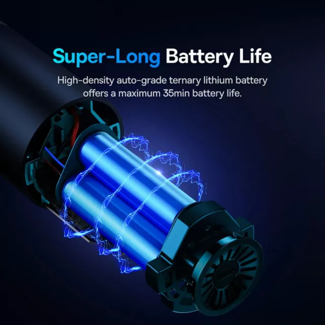 This handheld vacuum boasts a high-efficiency motor with a powerful 130W output and an impressive 7500mAh battery capacity. It combines 16,000Pa suction power with a unique blowing function for hard-to-reach places, making it ideal for quick cleanups in your car, home, or workspace. The low-noise operation (under 65dB) ensures a quieter cleaning experience, while the compact 13.1 inch height and lightweight 1.56 lbs body make it easy to carry and store.
