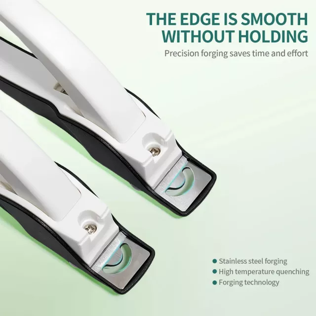 Built for durability and precision, this nail trimmer features a U-shaped blade that delivers three distinct cutting angles: 45° for rounded tips, 90° for straight edges, and 135° for that perfect French ‘smile’ curve. The built-in size selector helps you achieve your desired nail length without any guesswork, while the clipper’s catcher cover neatly collects clippings, keeping your workspace mess-free.