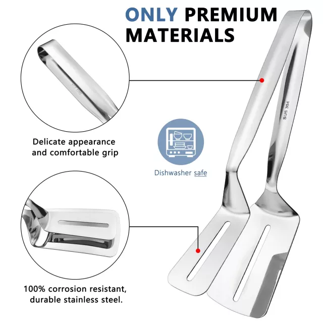 Don’t settle for less when it comes to food safety and kitchen tools. These stainless steel food tongs combine form and function to bring ease and efficiency to your cooking. Add them to your kitchen arsenal today and feel the difference every time you cook.
