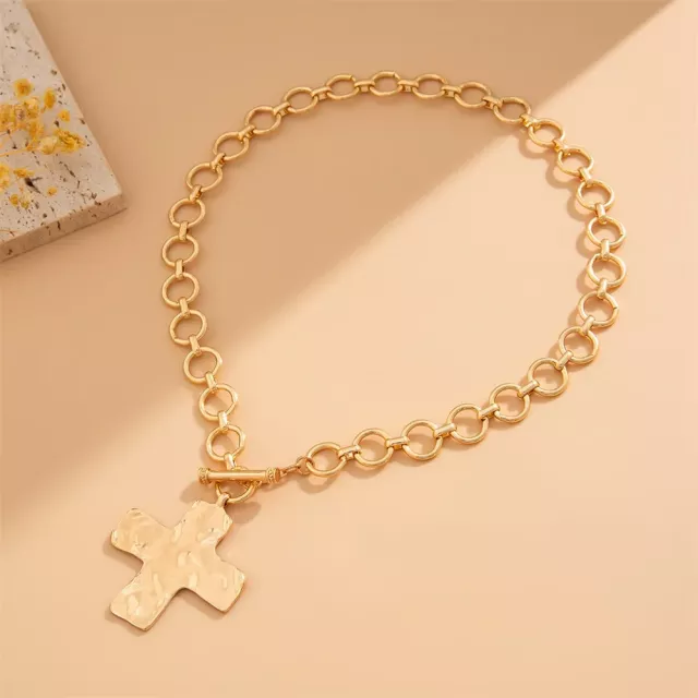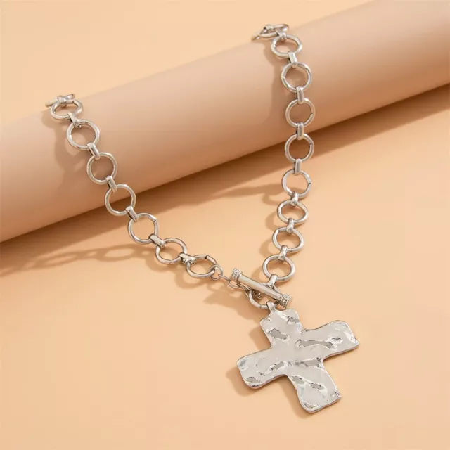 Crafted from durable, high-quality metal alloy, this necklace features a chunky cross pendant paired with a trendy OT buckle chain. The design strikes the perfect balance between vintage-inspired goth vibes and modern street style, making it a must-have for fashion lovers who like to mix and match their accessories. Available in both gold and silver, this necklace is versatile enough to complement your wardrobe through every season — from spring layering to fall statement looks.