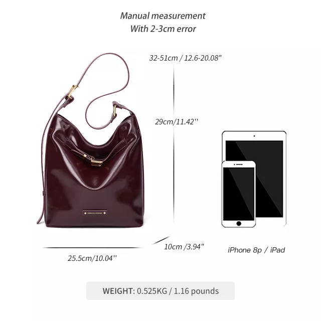 This handbag is more than just an accessory – it’s an extension of your personality. The single strap is comfortable on the shoulder or carried in hand, giving you multiple styling options. Measuring generously in size, it allows you to carry what you need without sacrificing your look. The solid pattern and bucket shape make it timeless, while its practical features make it your everyday essential.