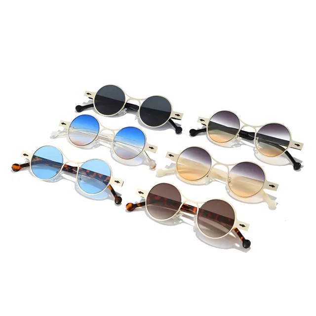 Bring a touch of vintage charm to your everyday look with these retro round metal sunglasses. Designed with a timeless circular frame, these shades are perfect for fashion lovers who want to stand out effortlessly. The sleek alloy frame, trendy rivet details, and gradient resin lenses create a bold yet classic look that works for every occasion. With full UV400 protection, they are as practical as they are stylish, keeping your eyes safe from harmful sun rays while adding a chic flair to any outfit.