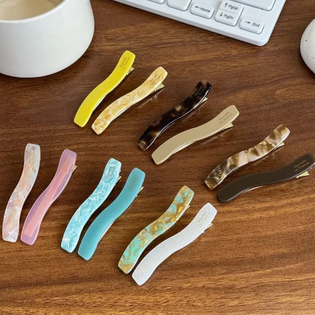 Each clip measures approximately 2.6 inches long and 0.6 inches wide—perfectly sized for both subtle styling and bold accents. Crafted from high-quality acetate with a sturdy alloy clasp, these clips offer both beauty and durability. Their smooth finish and vibrant color choices make them versatile enough to match any outfit or occasion.