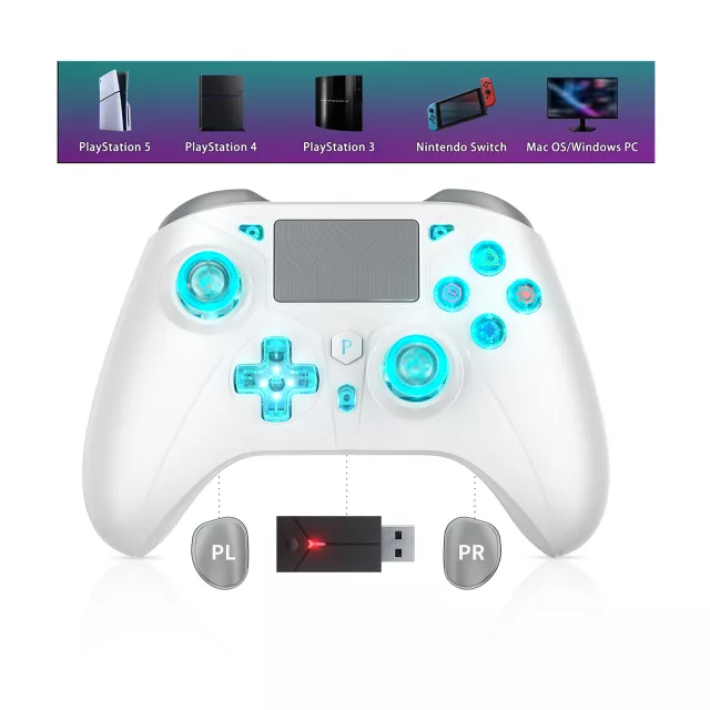 Get ready for a whole new level of gaming with this sleek and powerful wireless gamepad. Designed for versatility and performance, this controller connects seamlessly to your PS5, PS4, PS3, Switch, PC, Android, and iOS devices. Whether you’re a casual gamer or a competitive player, this gamepad delivers everything you need for an immersive gaming experience. With its customizable RGB lighting, turbo function, dual vibration joysticks, and multi-platform compatibility, it’s time to take your gaming to new heights.