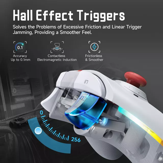 With its innovative Hall Effect technology, the controller offers unmatched precision and eliminates the issue of cursor drift, delivering more accurate and responsive control in all types of games. The dual Hall configuration, including Hall trigger and Hall rocker, ensures that every movement and button press feels smoother and more precise than ever before. Say goodbye to lag or unresponsive inputs and get ahead of the competition!