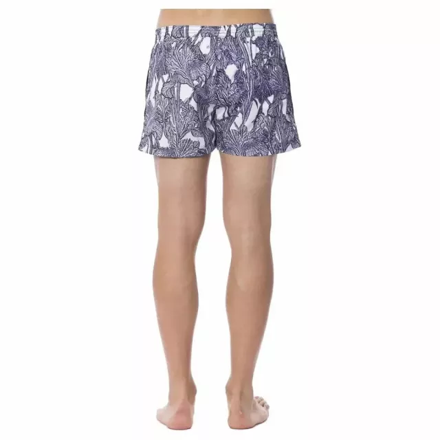 Crafted from high-quality polyester, these swim trunks offer a lightweight, breathable feel that dries quickly after a dip. The relaxed fit ensures freedom of movement, while the elastic waistband provides a secure, adjustable fit so you can move with confidence. The eye-catching light blue color and dynamic print elevate your summer wardrobe, setting you apart from the crowd with that signature Roberto Cavalli finesse.