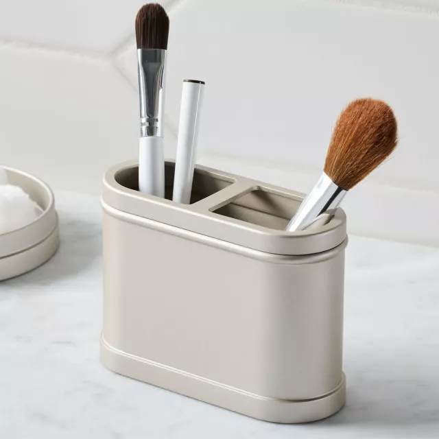 The divided slots are carefully designed to hold toothbrushes upright and separated, promoting better hygiene while keeping your essentials within reach. Not just for bathrooms, this versatile organizer is perfect for use in bedrooms, offices, or vanities—anywhere you need compact storage with a hint of charm. Its space-saving design ensures it fits easily on small countertops or shelves without sacrificing function or style.