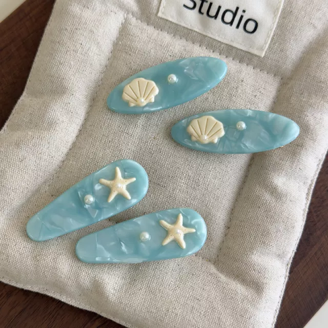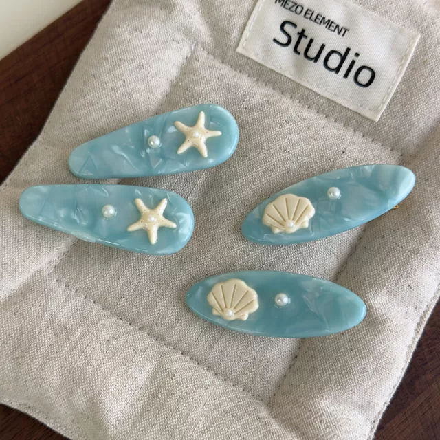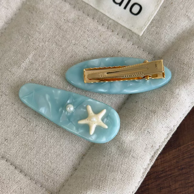 Bring a touch of ocean magic to your everyday look with these Sea Blue Shell & Starfish Hair Clips. Designed with a dreamy sea-blue finish and adorable starfish and shell details, these retro acetate hairpins are the perfect way to add sweetness and charm to any hairstyle. Lightweight yet durable, they stay comfortably in place while giving your outfit a playful, feminine touch.