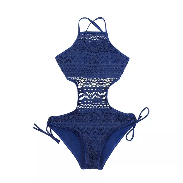 The combination of mesh texture, a flattering cut-out pattern, and a lace-up open back creates a swimsuit that’s both fashion-forward and sexy. The soft yet durable polyester fabric hugs your body in all the right places, while the high-stretch quality means it moves with you – whether you’re diving into the ocean or just soaking up the sun.