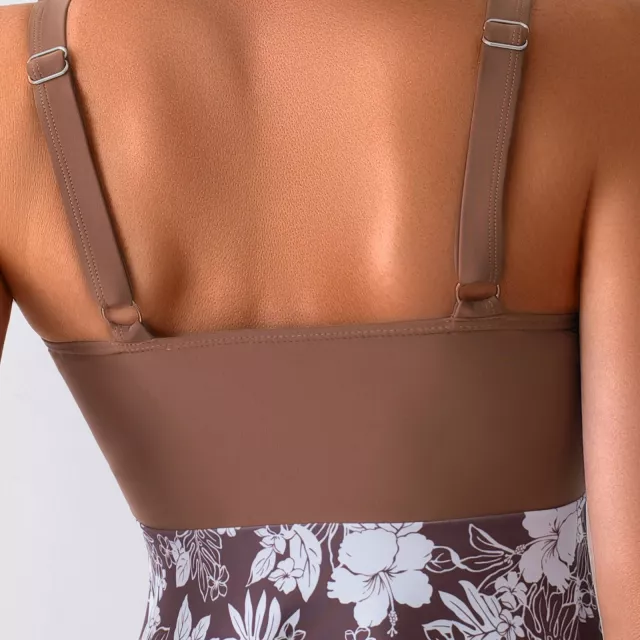 The eye-catching printed top boasts trendy straps that offer both visual appeal and adjustable support, helping you find the perfect fit while highlighting your natural shape. The solid color bottoms are made from soft, stretchable fabric that moves with you, ensuring all-day comfort whether you’re swimming, sunbathing, or playing beach volleyball. Designed with your active lifestyle in mind, this tankini is easy to slip on and off, ideal for fast changes between the water and your next adventure.