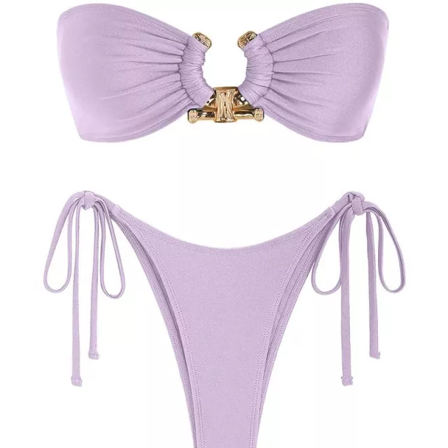 Make waves with confidence in our stunning Solid O Ring Bandeau Bikini Set. Designed for women who love to turn heads, this two-piece swimsuit combines bold metallic ring details with sleek, sexy design. The bandeau-style padded top offers just the right amount of support without wires, while the tie-side bikini bottoms hug your hips with a flattering low-rise fit. Crafted from high-quality polyester and spandex, this bikini stretches and moves with you – perfect for poolside lounging, tropical getaways, or beach days under the sun.