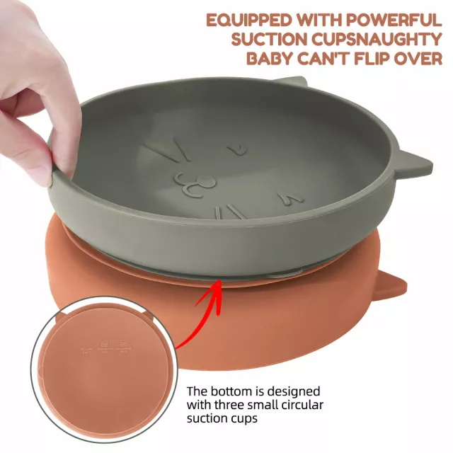 Crafted from food-grade silicone, this plate is free from BPA, phthalates, and other harmful substances—so you can serve every bite with confidence. The strong suction base sticks firmly to flat surfaces, helping prevent messy spills and plate-tossing tantrums. Its smooth surface is gentle on growing hands and teeth, while the fun cat shape keeps kids engaged and focused on their food. With three divided sections, it’s perfect for introducing different flavors and textures without them mixing together. Best for babies and toddlers from 6 months and up, this plate supports independence at the dinner table.