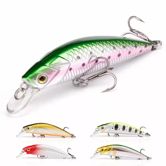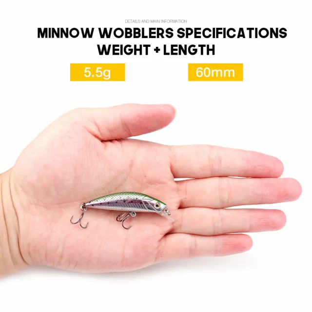 The Sinking Minnow Fishing Lure is designed to attract predator fish with lifelike detail and irresistible swimming action. At just 2.36 inches long and weighing 0.19 oz, this artificial bait is perfect for catching trout, pike, bass, walleye, perch, and more. Its realistic 3D fish eyes, detailed body print, and unique reflective coating make it look like a real baitfish, increasing your chances of a successful catch every time.