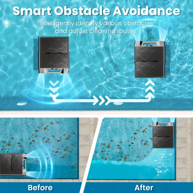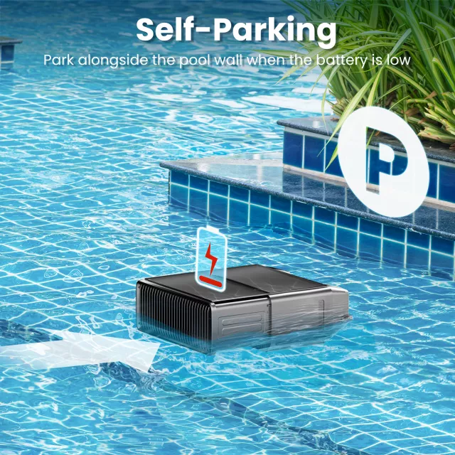 Equipped with advanced ultrasonic radar and intelligent navigation, this robotic pool skimmer avoids obstacles and plans the most efficient cleaning path without any manual assistance. It features two cleaning modes—circulation mode for everyday cleaning and edge mode for removing debris along pool walls—ensuring a spotless pool surface in every corner. With self-parking technology, it automatically moves to the pool edge when the battery is low or cleaning is complete for easy retrieval.