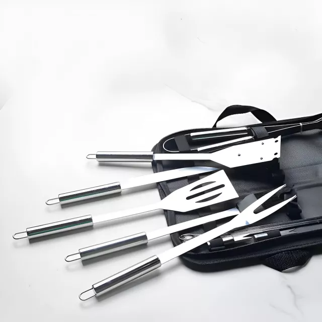 What sets this BBQ tool set apart is its blend of durability, convenience, and versatility. Unlike other sets that may wear out quickly, this set is made from premium stainless steel that resists rust, stains, and heat, ensuring that your tools last season after season. The easy-to-clean chrome-plated finish makes maintenance a breeze, while the ergonomic handles provide a comfortable grip, even during long cooking sessions. Whether you’re flipping burgers, grilling steaks, or basting vegetables, this set gives you everything you need to make your grilling experience effortless and fun.
