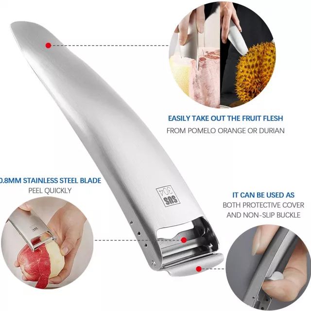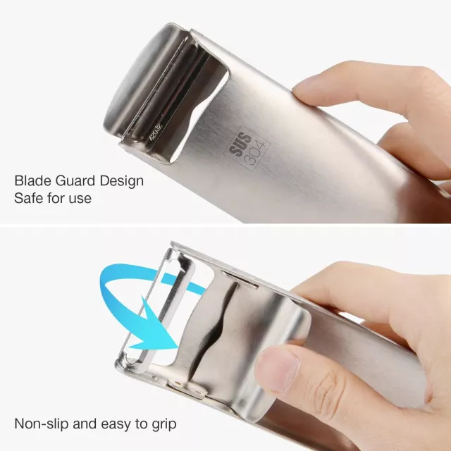 The combination of industrial-grade steel, multifunctional usability, and user-friendly design sets this peeler apart. Unlike bulky gadgets, it’s sleek yet sturdy, able to take on tough jobs without wearing out your hands. The protective blade cover doubles as a functional grip aid, helping you peel with ease and control. A truly modern kitchen gadget, it brings together utility, style, and lasting quality.