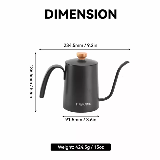 Crafted from high-quality 304 food-grade stainless steel, this kettle ensures clean, pure water with every use. The elegant wooden handle not only adds warmth and sophistication to your setup but also offers a comfortable, heat-resistant grip. The slender gooseneck spout is the star feature—providing a smooth, steady stream for ultimate control when pouring, so you can master every step of the brewing process.