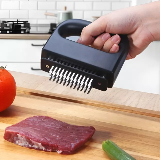 Transform your home-cooked meals with our premium Stainless Steel Meat Tenderizer. Whether you’re firing up the grill for a backyard BBQ or preparing a family dinner, this powerful kitchen tool is designed to make every bite more tender, flavorful, and delicious. Equipped with ultra-sharp stainless steel needle blades, this tenderizer pierces deep into any cut of meat, allowing your favorite marinades and spices to fully absorb for a mouthwatering taste experience.
