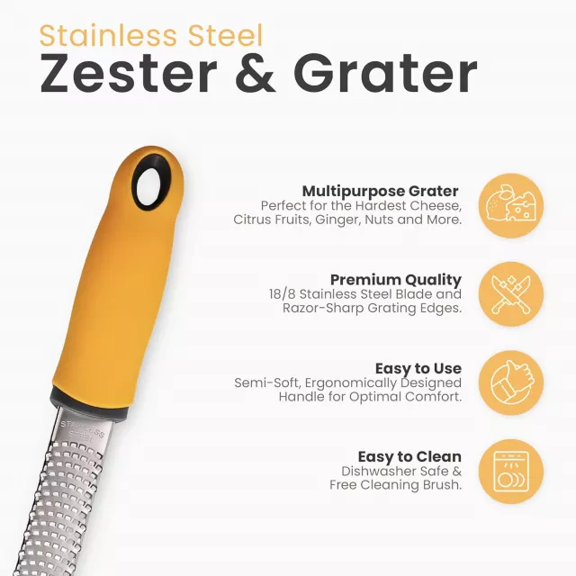 Designed with a sharp stainless steel blade and a non-slip handle, this tool guarantees a smooth and precise zesting or grating experience every time. The lightweight design (just under 4 oz) makes it incredibly easy to handle, while the durable construction ensures long-lasting use in any kitchen environment.