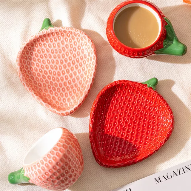 This mug isn’t just cute—it’s crafted for comfort and convenience. The double-layer ceramic keeps your beverages warm while protecting your hands, and the matching strawberry dish is perfect for holding snacks, cookies, or simply catching drips. Use it for breakfast, afternoon tea, or cozy evenings with your favorite book or show. It also makes a thoughtful gift for couples, friends, or anyone who loves sweet, functional design.