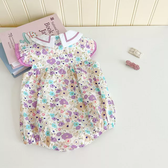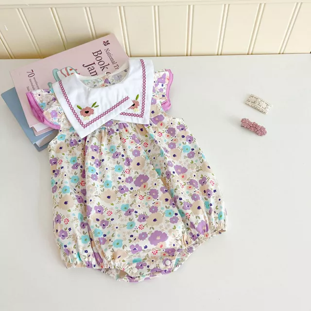 Let your baby girl bloom in sweet summer style with this charming purple floral bodysuit. Designed with a delicate embroidered flower pattern and soft cotton fabric, this one-piece is perfect for warm days and picture-perfect moments. Whether it’s a day out at the park, a casual playdate, or a special family gathering, this floral romper adds a fresh, cute touch to your baby’s wardrobe. The sleeveless cut and breathable fabric help keep her cool and comfy all season long.